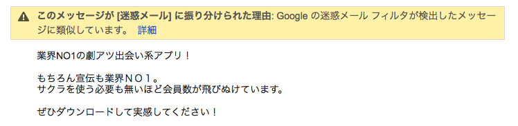 使い始めてかなりの期間になるのだけれど、ここ数日で日本語のスパムメールが届くようになった。